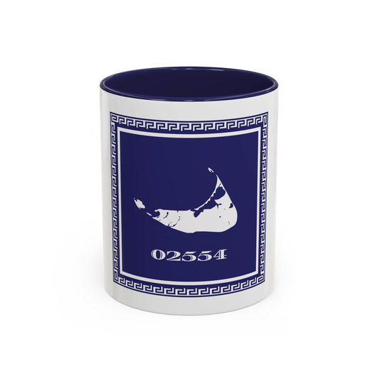 Coffee Mug Nantucket Zip Code Navy White Greek Key Surround 11/15oz