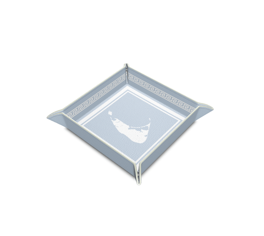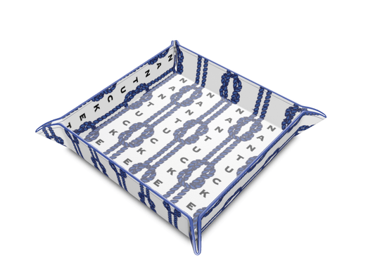 Blue on Blue Square Knot with NANTUCKET Text Leather Valet Tray