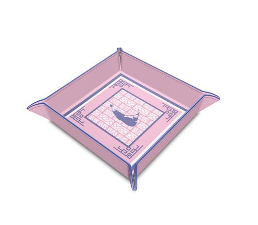 Hand Illustrated Nantucket Leather Trinket Tray in Pink and Blue