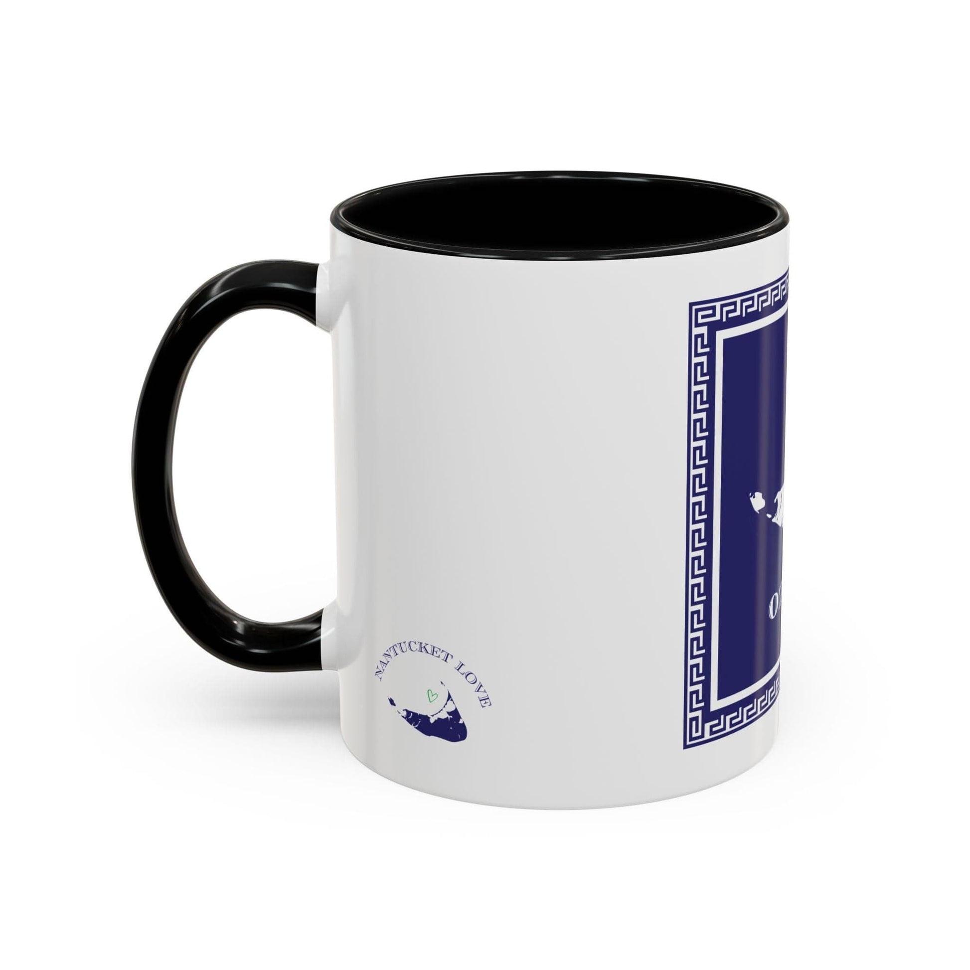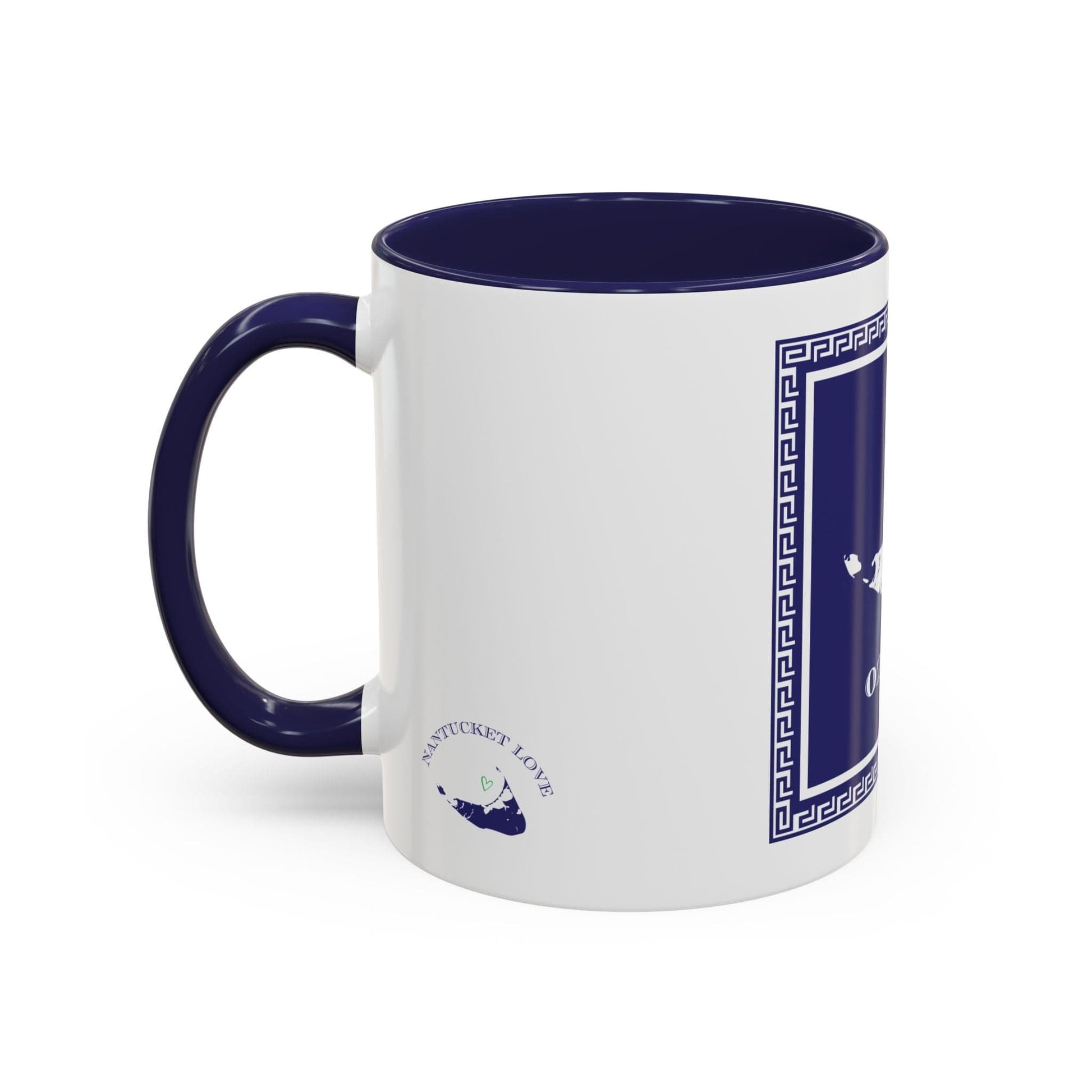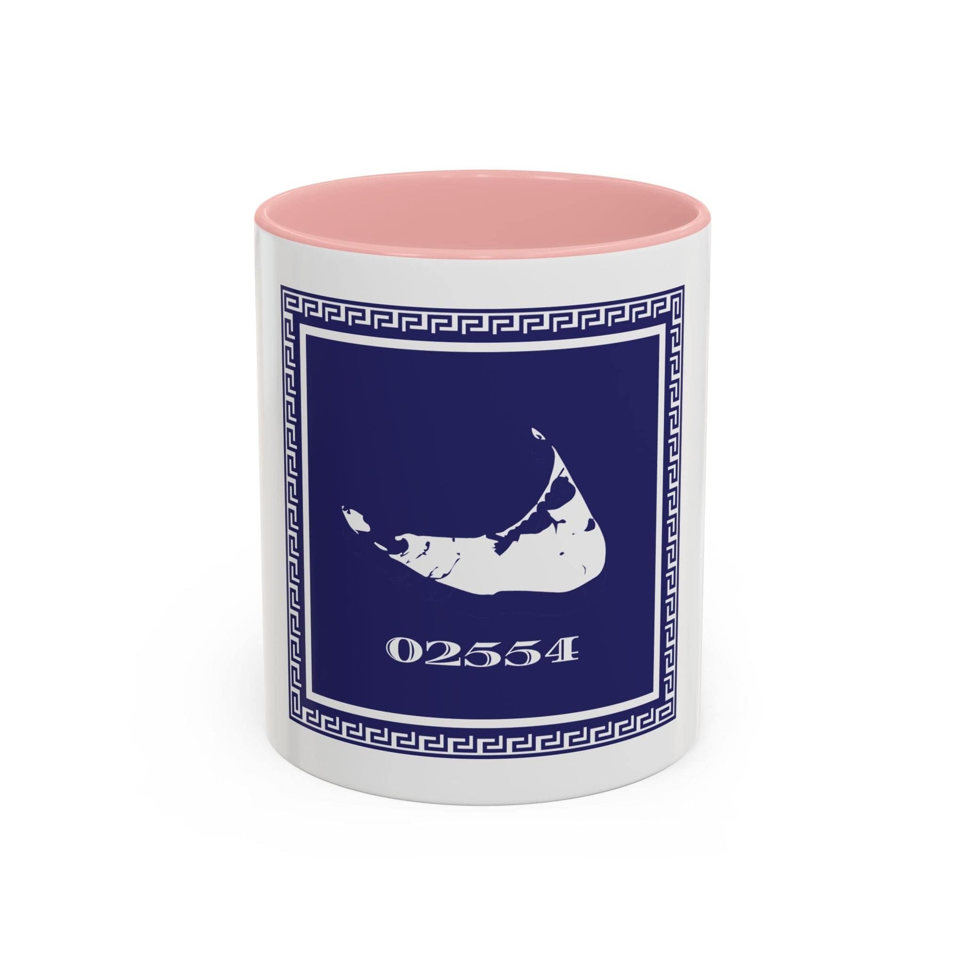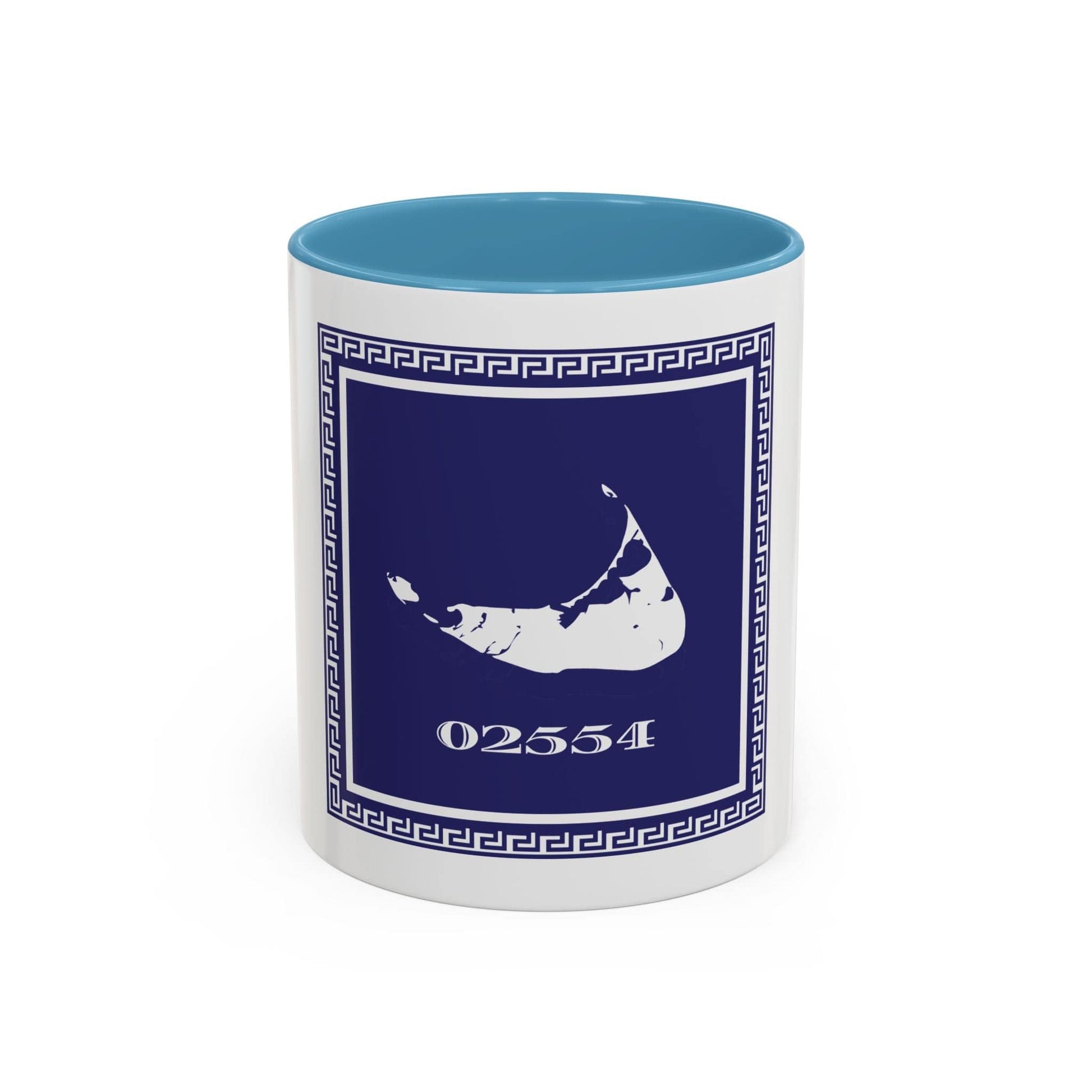 Coffee Mug Nantucket Zip Code Navy White Greek Key Surround 11/15oz