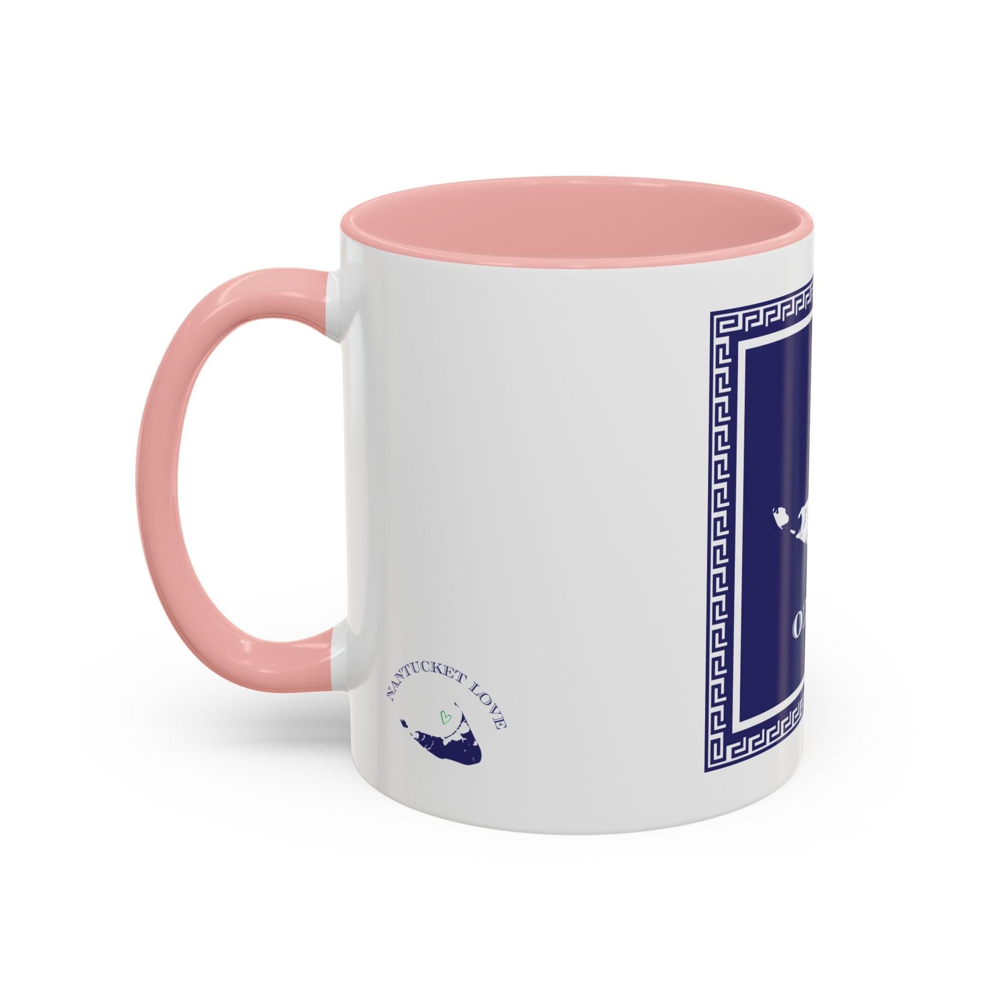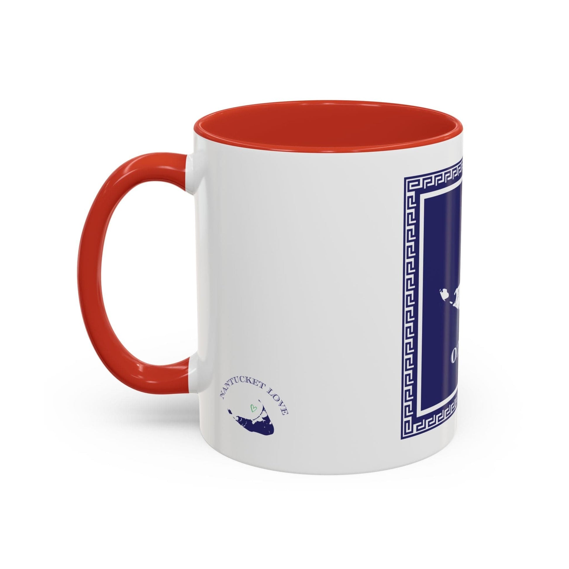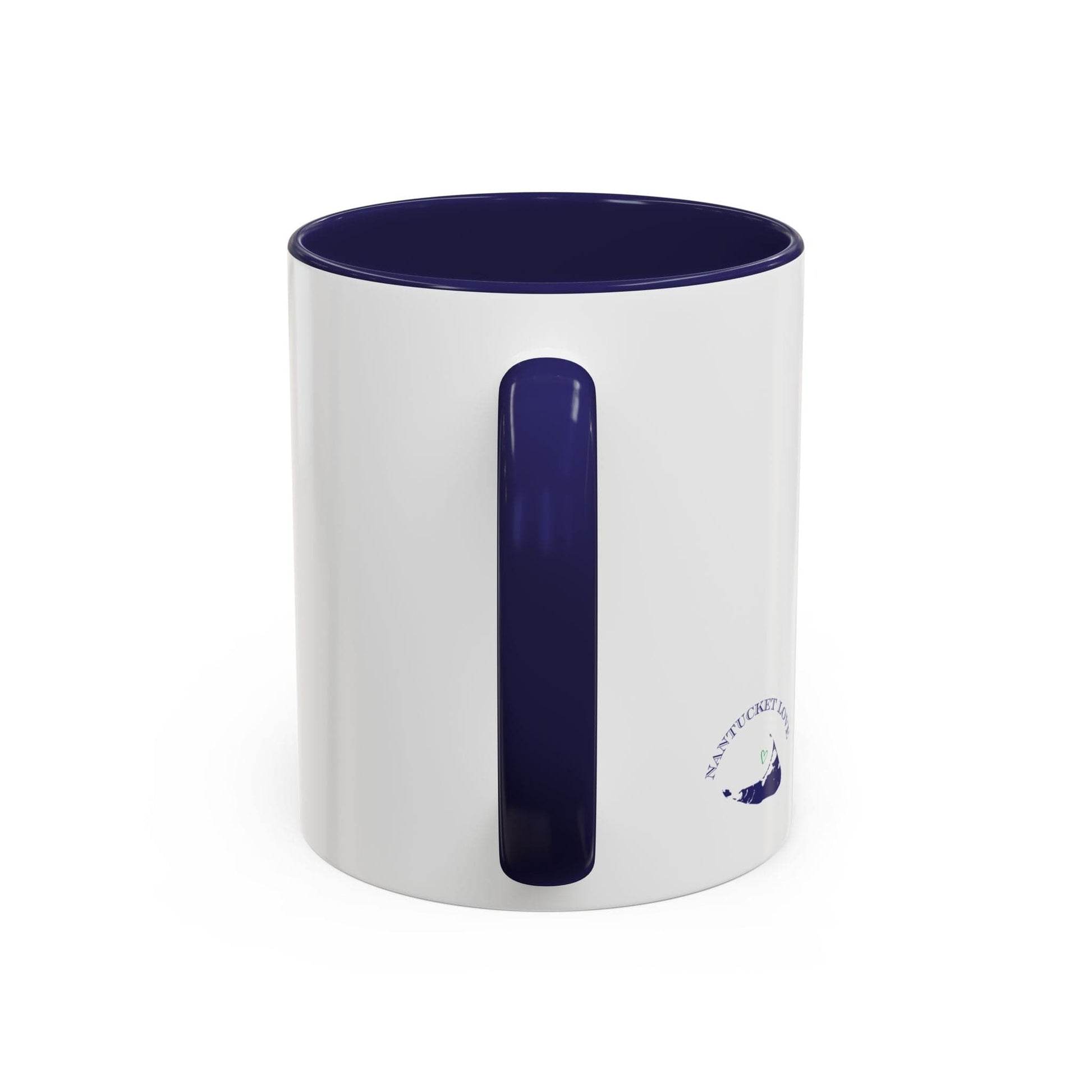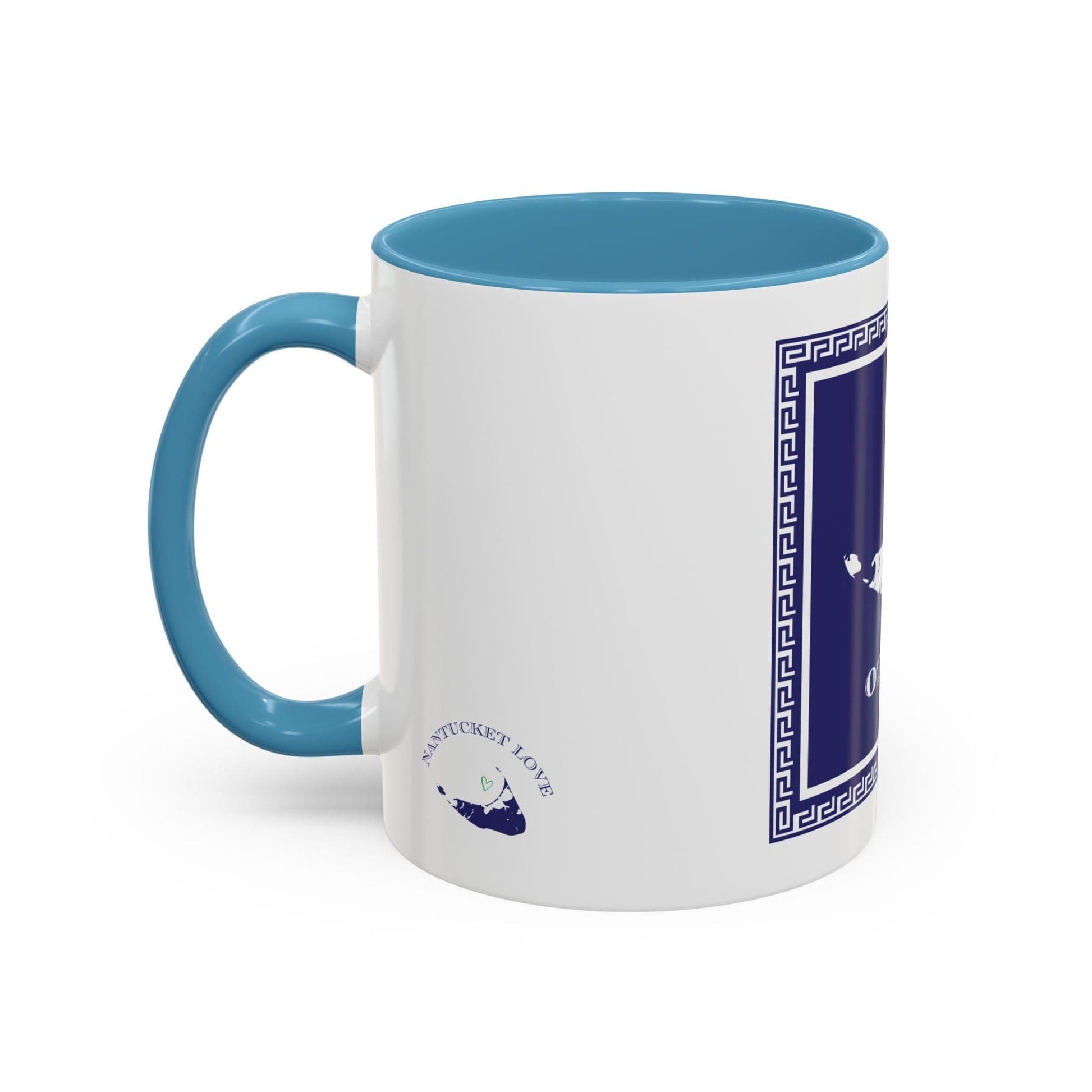 Coffee Mug Nantucket Zip Code Navy White Greek Key Surround 11/15oz