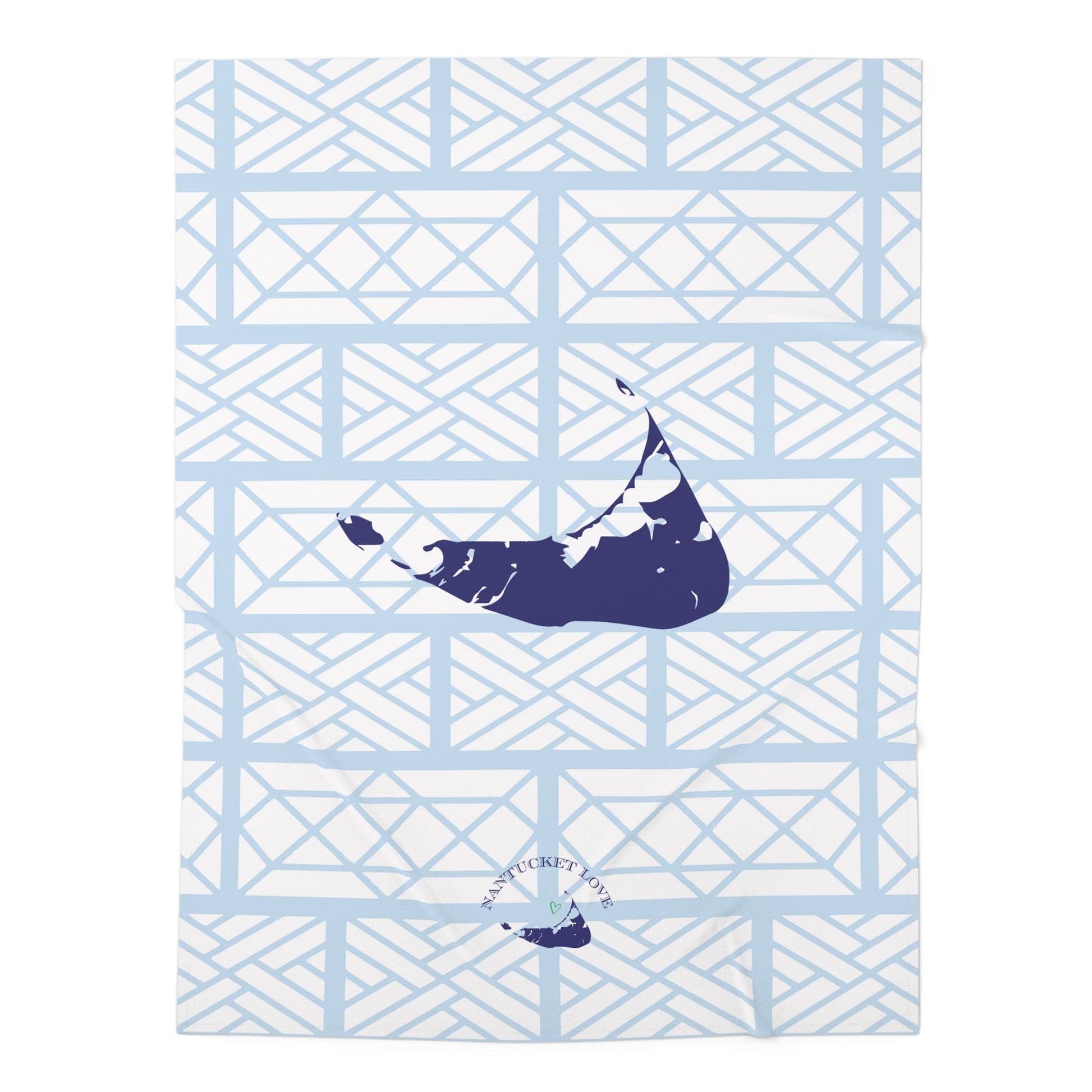 Our Nantucket blue baby blanket features our Chippendale pattern with a large navy blue Nantucket. The 100% jersey polyester is incredibly soft and perfect for baby! When washing, use cold water and tumble dry.