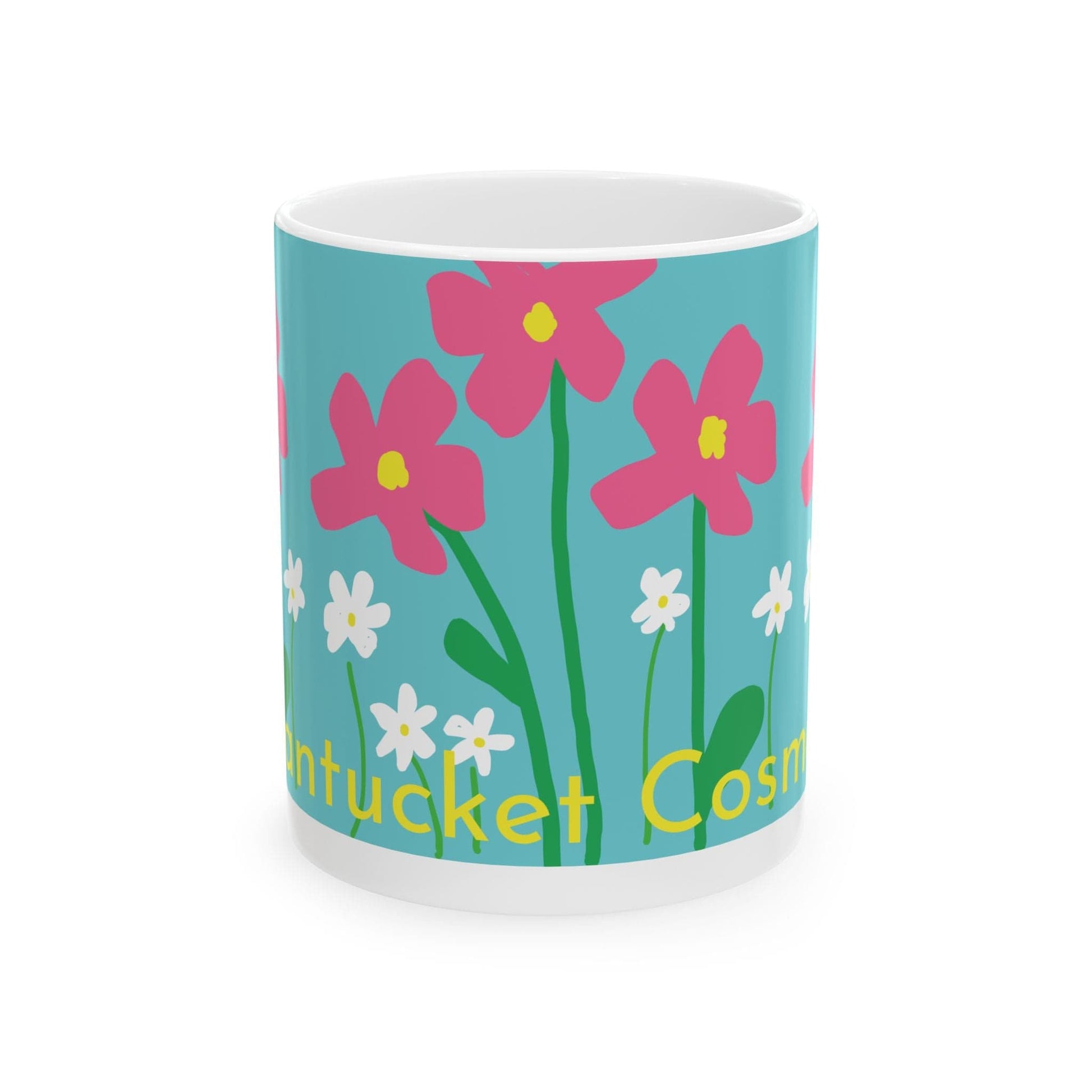 Our Nantucket Cosmos is one of our favorite designs. It features the Cosmos that grow between the sidewalk and the gas station on the way to the airport. Every summer, those Cosmos are there. And this design pays homage to them! It’s BPA and lead-free, microwave & dishwasher-safe, and made of white, durable ceramic. It is truly the perfect gift for Nantucket coffee, tea, and chocolate lovers. Especially those who know where to find beauty in the most unexpected places!