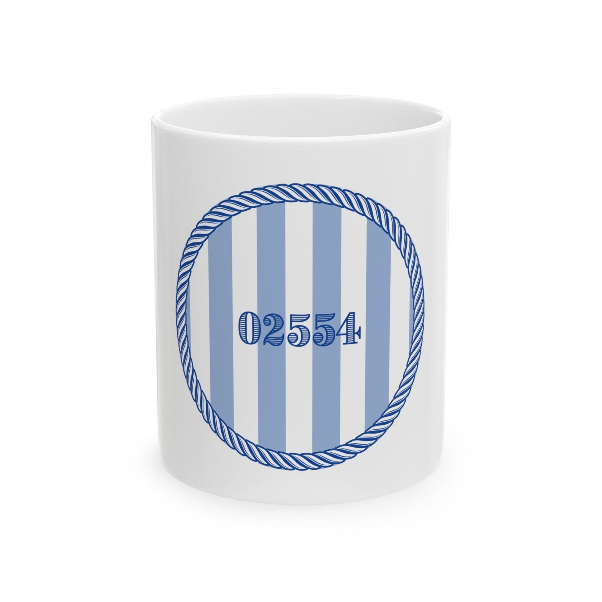 Nantucket 02554 Blue and White Striped Ceramic Mug, (11oz)