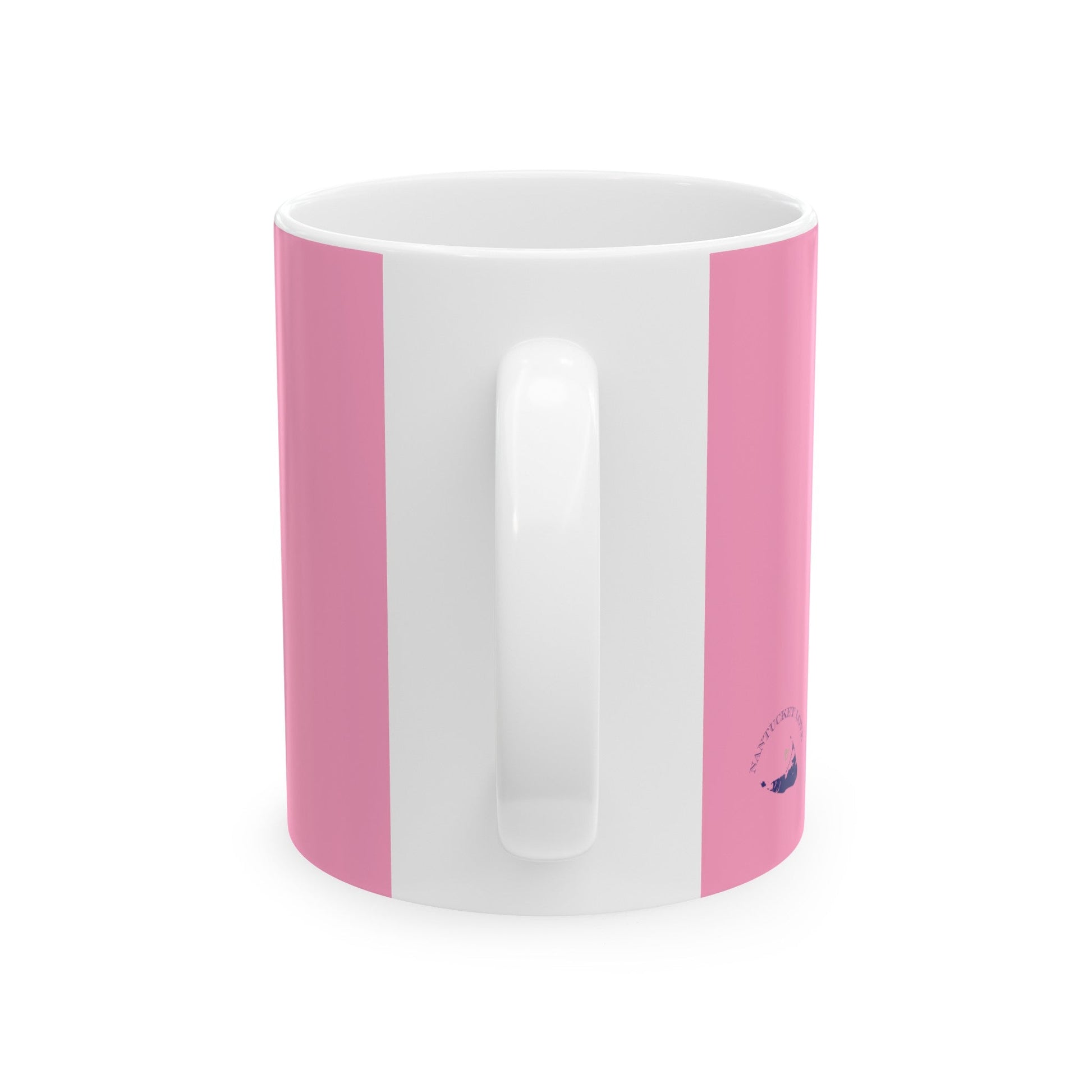 Our Nantucket Daisies design in blue and yellow on rose pink is so pretty and happy looking! Who wouldn't want to drink their coffee or tea out of one of these mugs? They are BPA and lead-free, microwave & dishwasher-safe, and made of white, durable ceramic. The perfect gift for your Nantucket coffee, tea, and hot chocolate lovers.