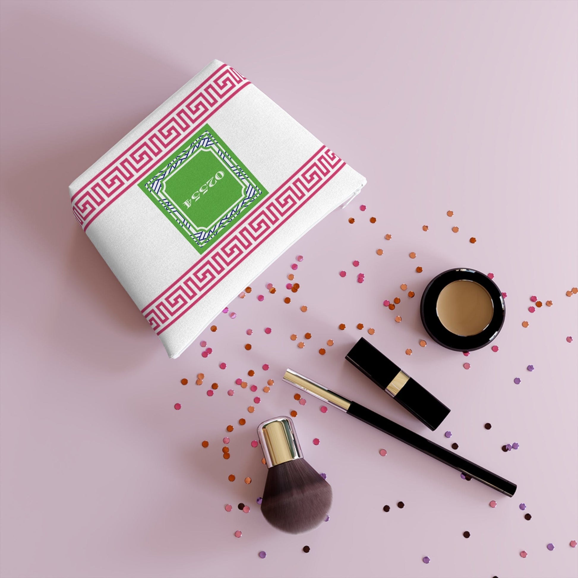 Nantucket Pink and Green Zip Code Cotton Cosmetic Bag