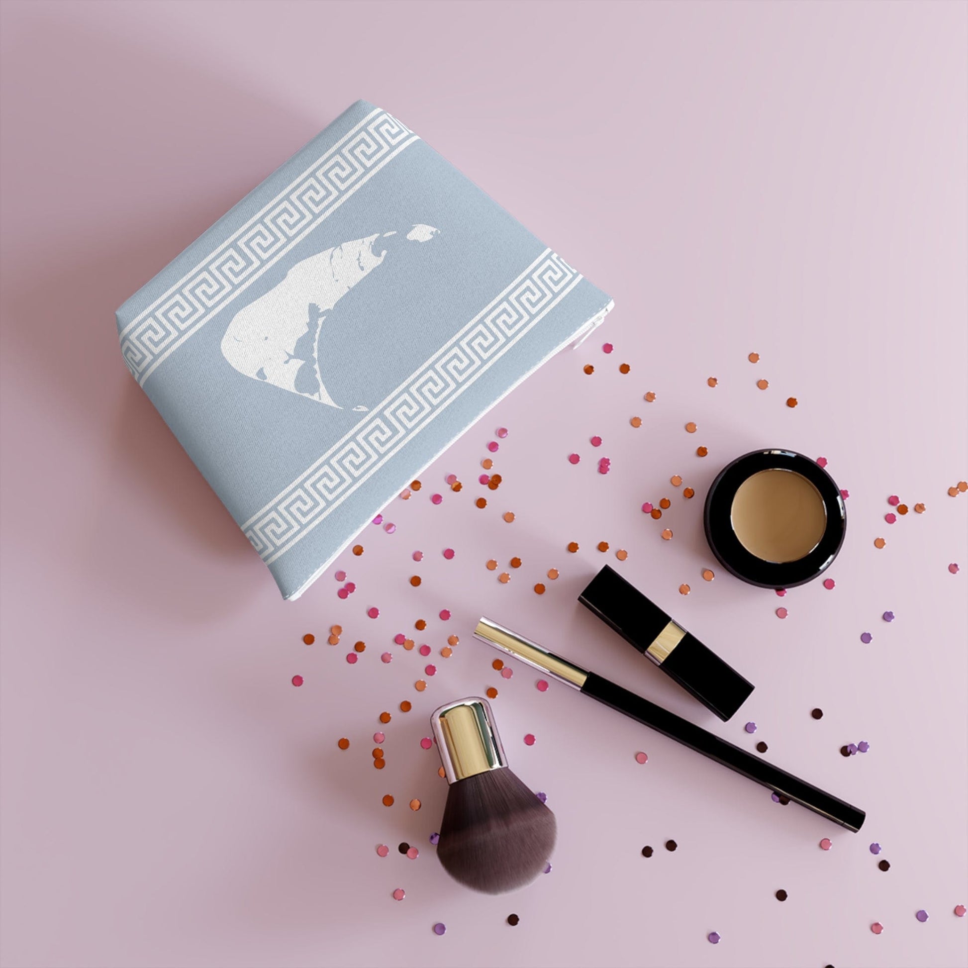 Nantucket Greek Key Cosmetic Bag in "Brooke Blue"