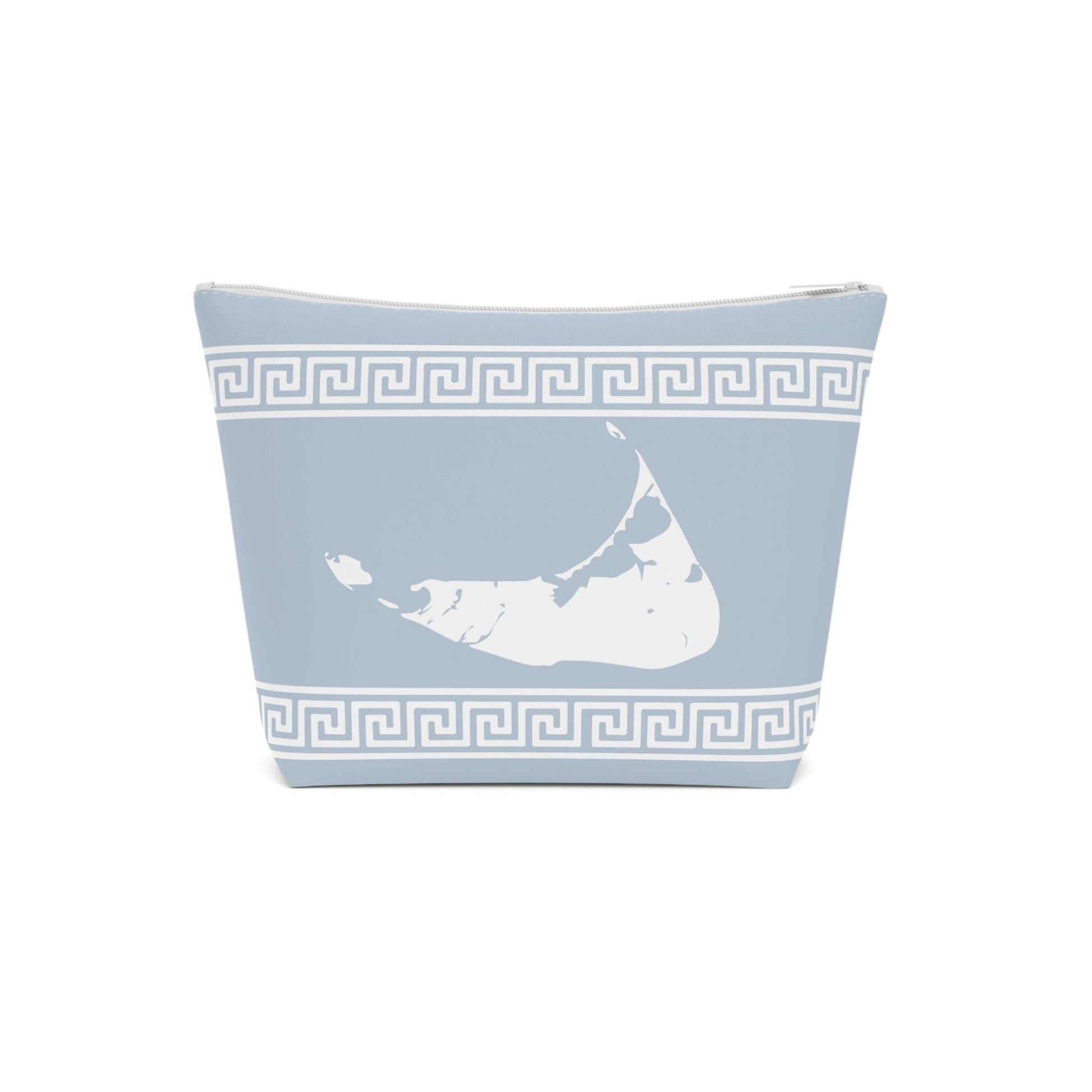 We love this bag! It is quintessential Nantucket--from the "Brooke Blue" background and the white Greek Key borders to the beautiful bright white Nantucket on the front of the bag, it is just the prettiest. And although we originally designed and used it as a cosmetic bag, we've also found it quite useful for chargers, sun protection, nail polish, and hair ties....