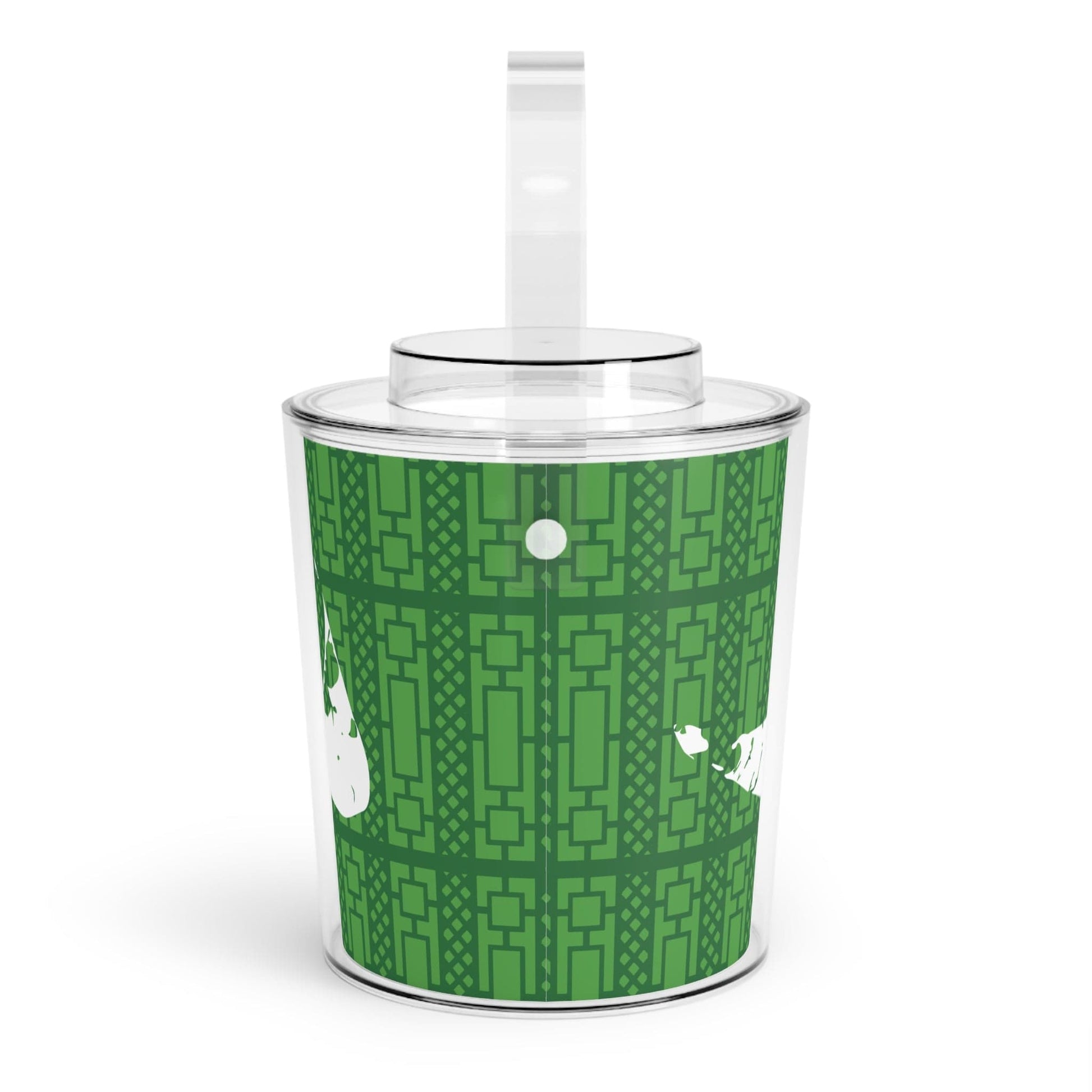 Nantucket and Lattice Acrylic Ice Bucket with Tongs in Green and White