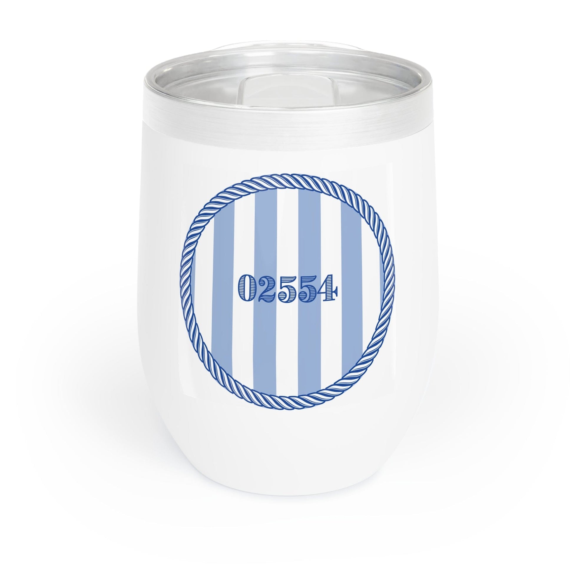 Our custom Nantucket wine tumbler helps you enjoy your favorite wines at the perfect temperature. The Nantucket zip code atop a light blue and white stripe and framed by a woven sheet (or line!) rope is simplicity to the nth degree! The double-insulated walls will help retain your drink's temperature, while the stainless steel, stemless design makes for incredible durability and ease of use. The perfect Nantucket wine tumbler! Brides, Bridesmaids, Friends, Siblings, Cousins, Girlfriends...everyone will love this tumbler!