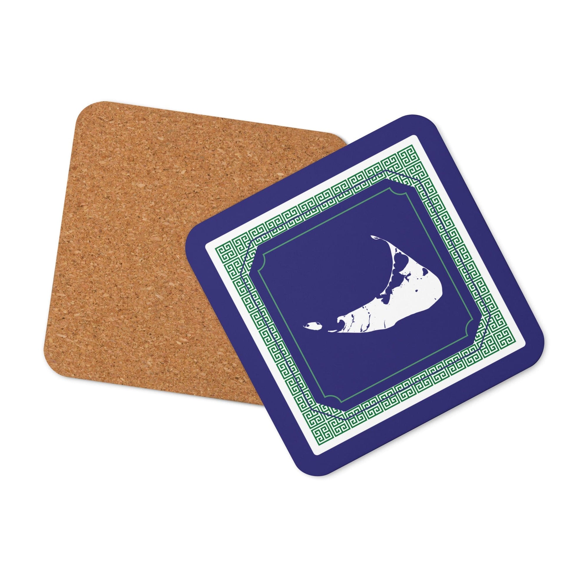 Nantucket Blue and Green Cork-back Coaster (Individual Coaster)