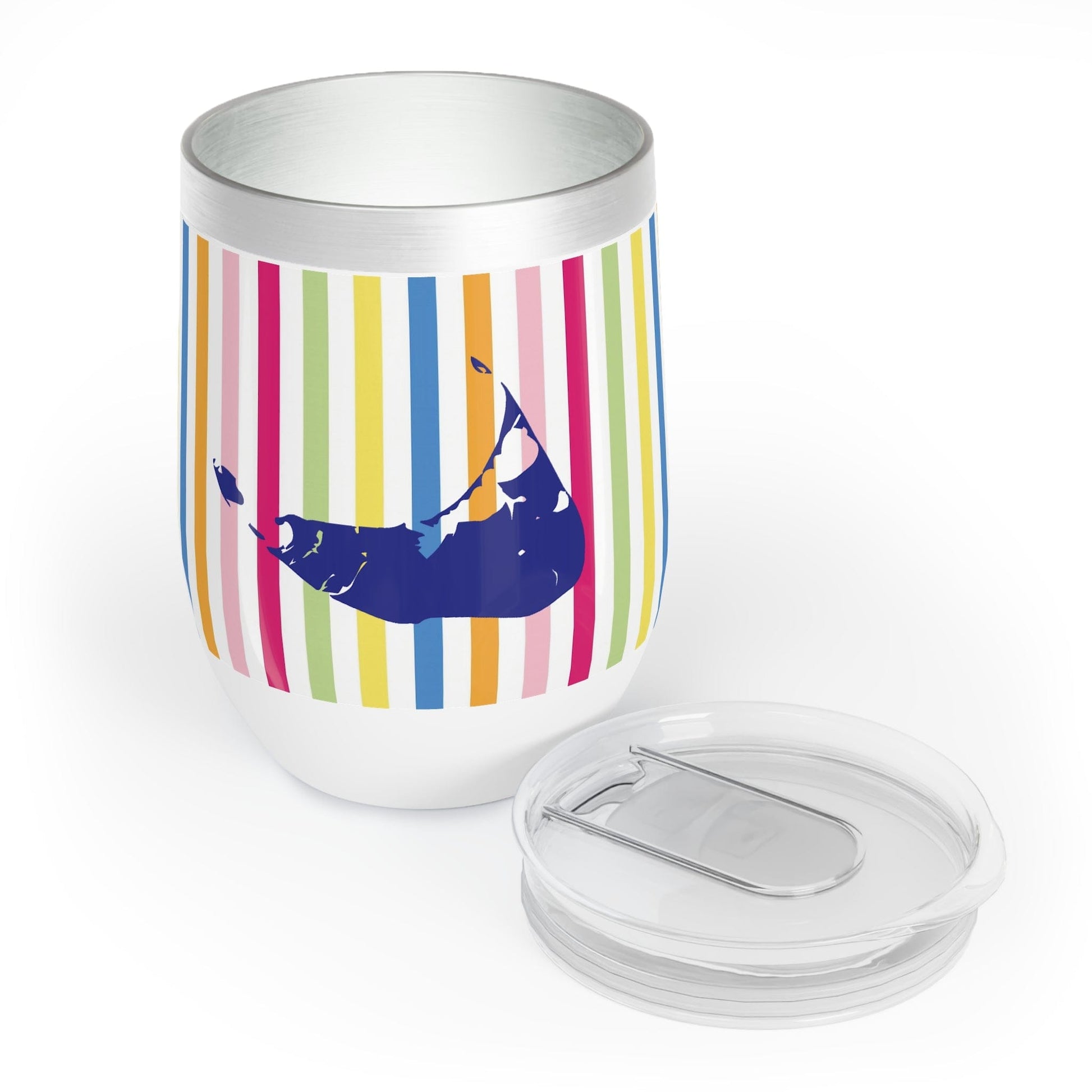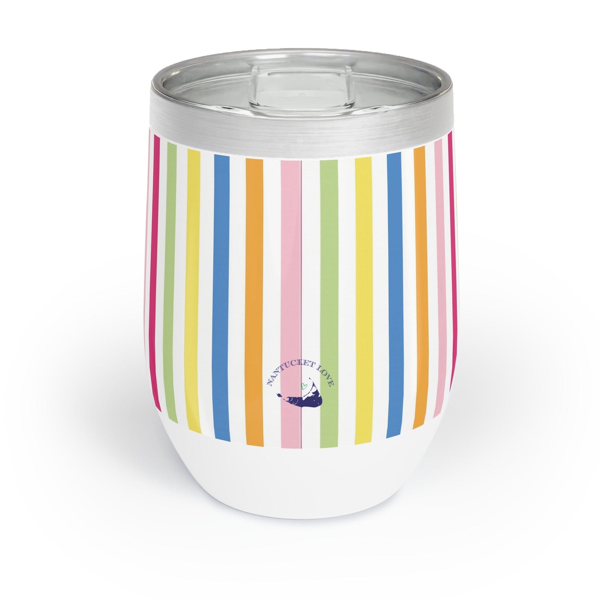 Our Nantucket "happy stripes" custom wine tumbler will help you enjoy your favorite wines at the perfect temperature. Its double-insulated walls help retain your drink's perfect temperature, whatever that may be, while the stainless steel, stemless design makes for incredible durability and ease of use. Makes an excellent gift for the Nantucket lover in your life! Think housewarming, bridesmaids, friends, or siblings!