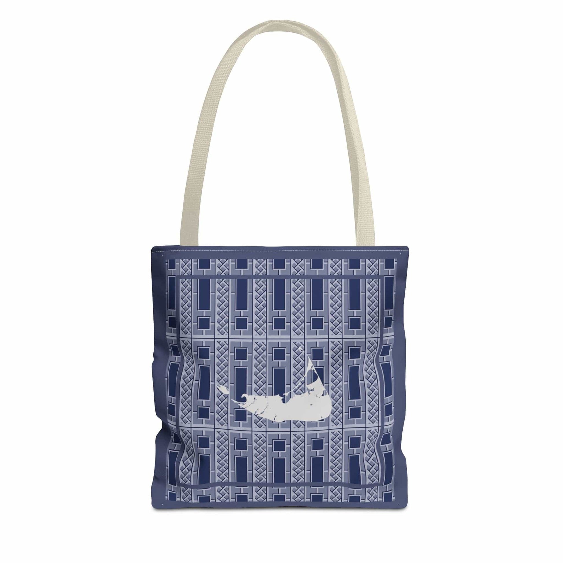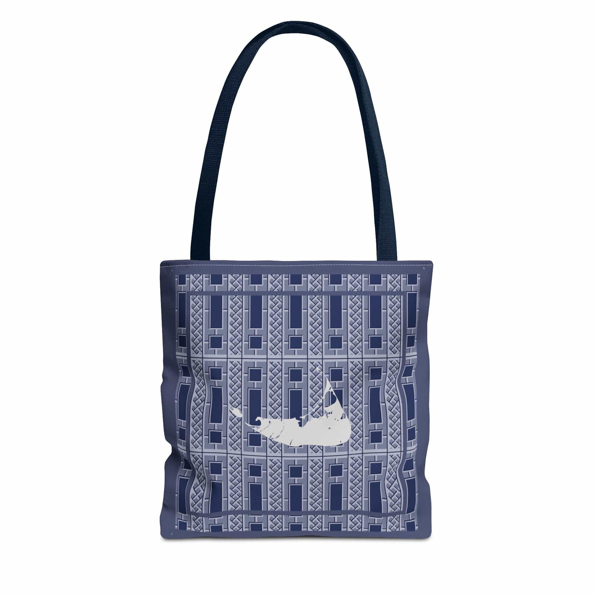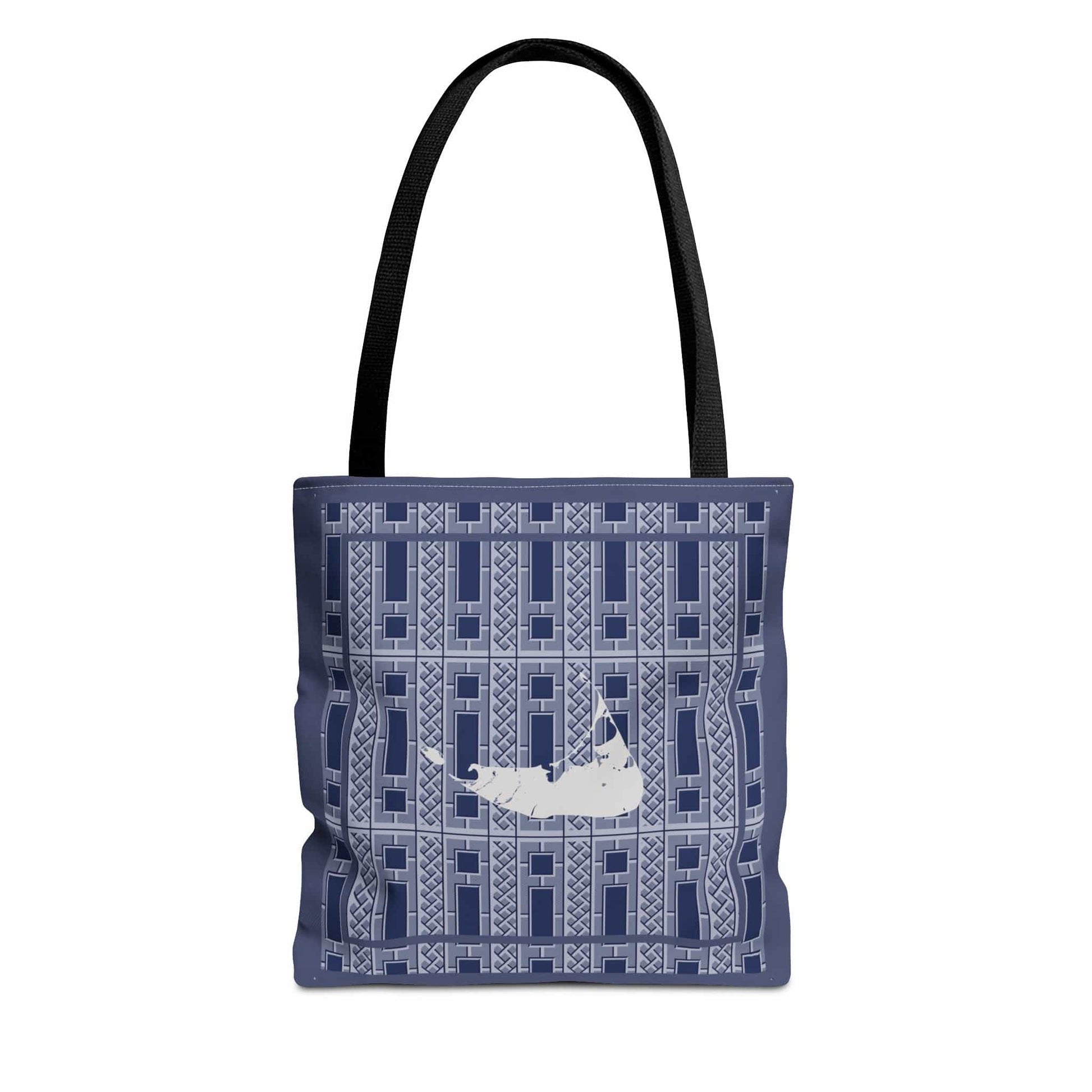 Nantucket Light Gray on Blue Lattice Tote Bag