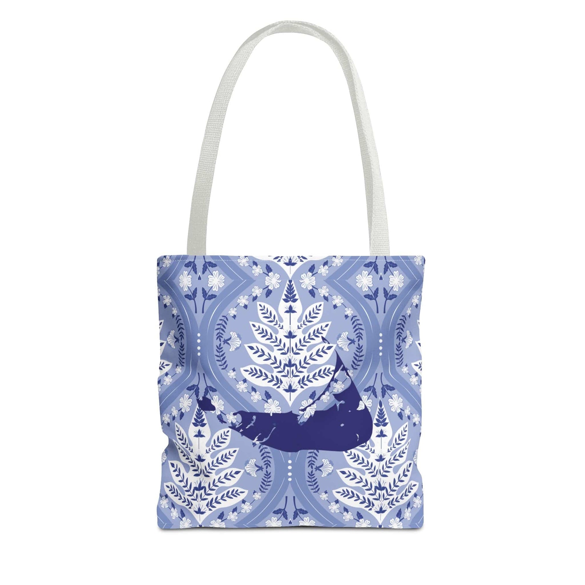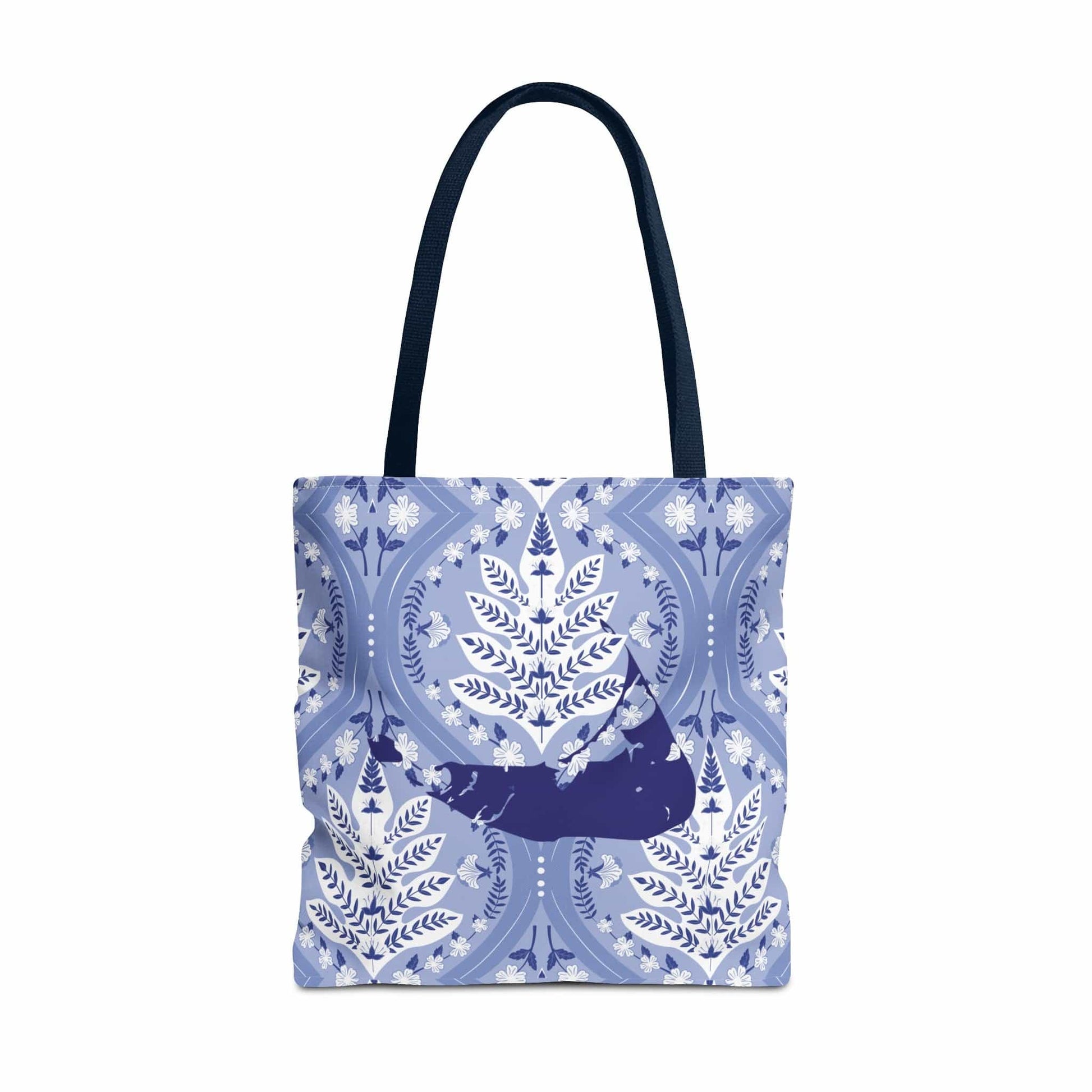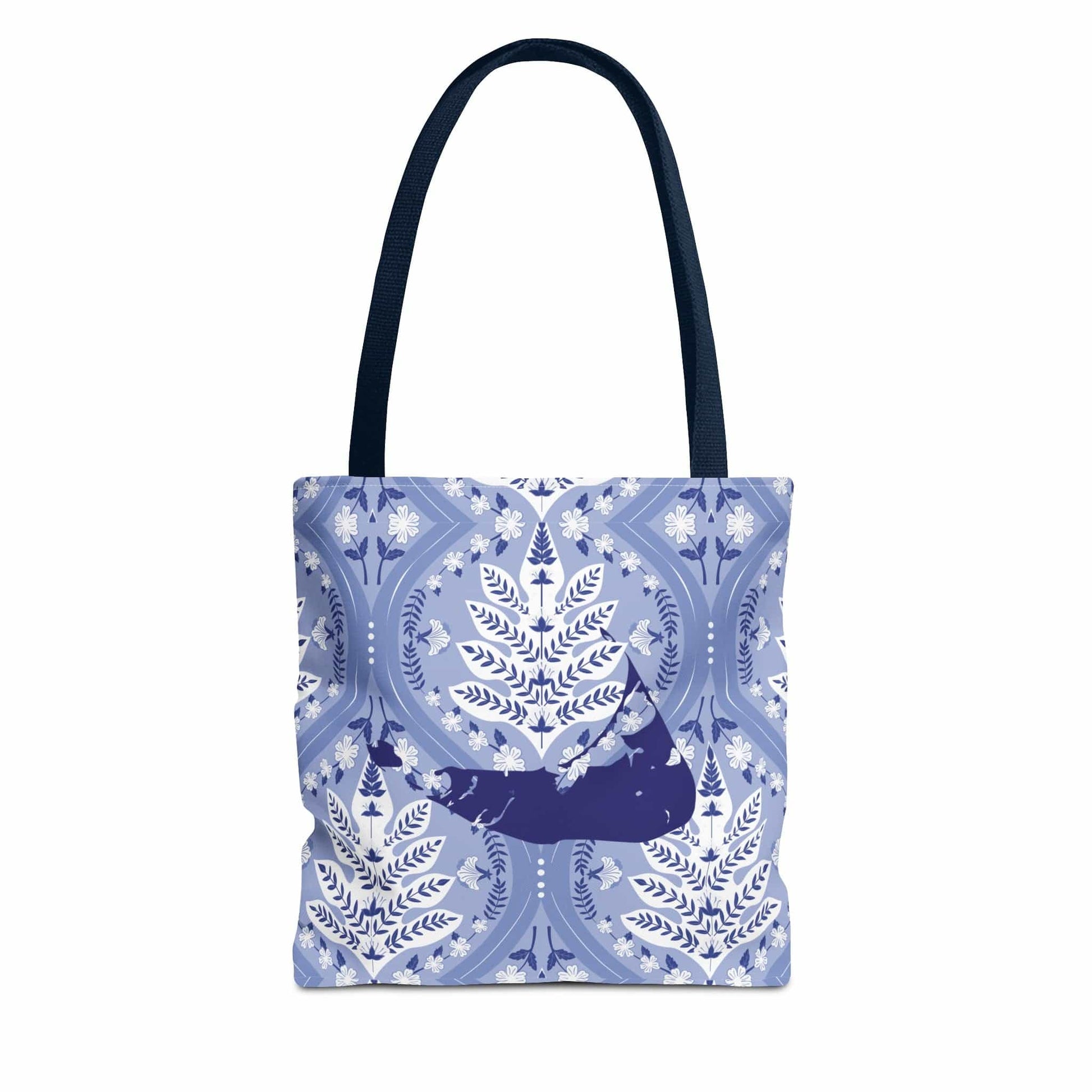 Available in 3 sizes to add both functionality and style, our Nantucket Blue on Blue Floral Totes are made with spun polyester. They feature double-stitched seams, cotton webbing straps, and nonwoven laminate lining for high-end durability. They're light and therefore great for the beach, Town, or the daily trip to Stop & Shop.
