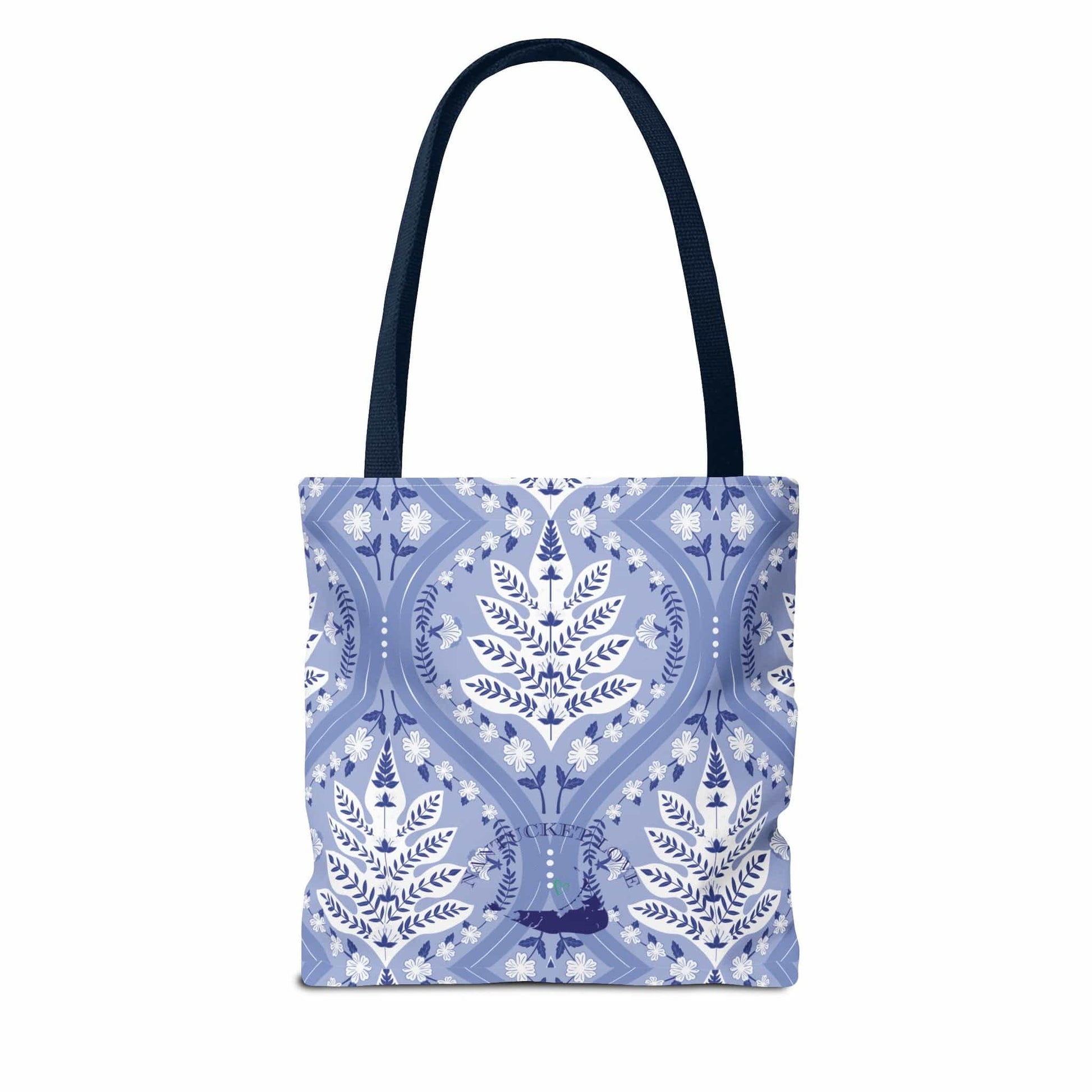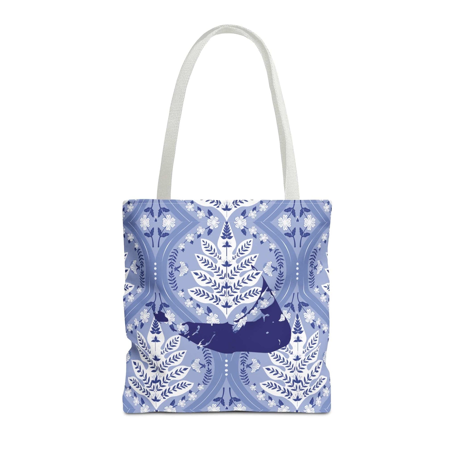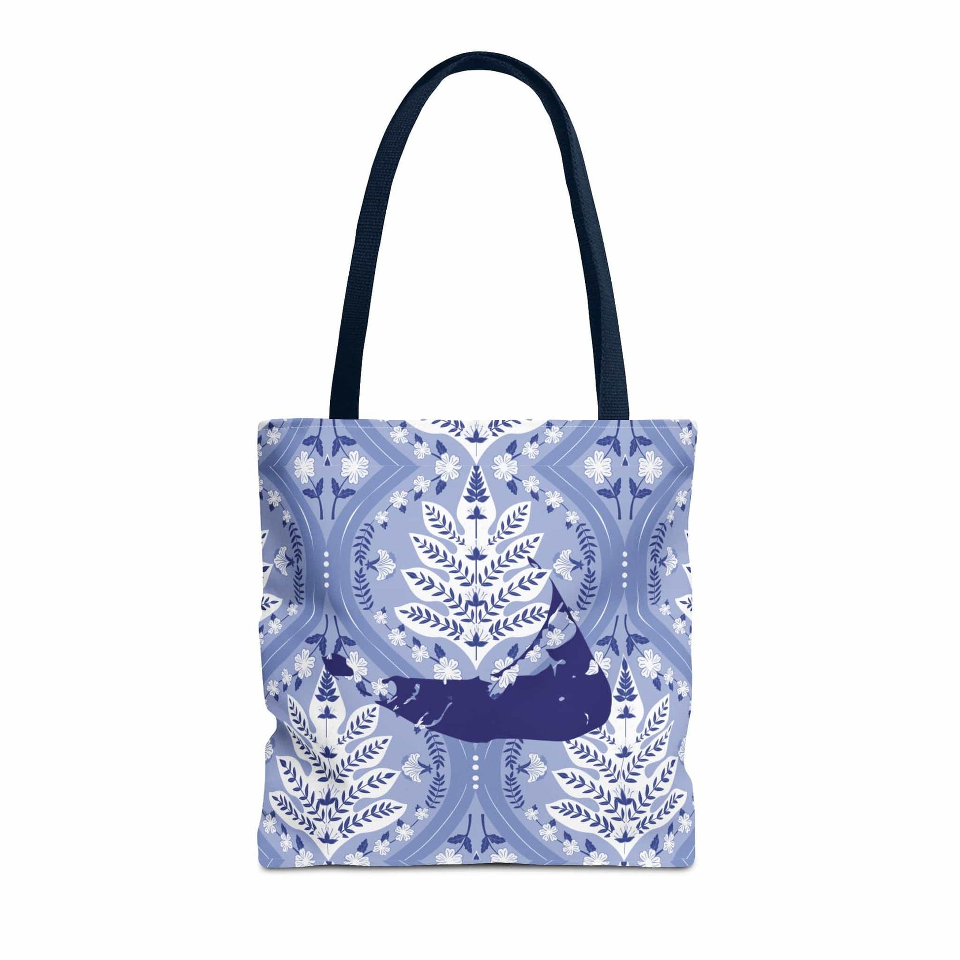 Available in 3 sizes to add both functionality and style, our Nantucket Blue on Blue Floral Totes are made with spun polyester. They feature double-stitched seams, cotton webbing straps, and nonwoven laminate lining for high-end durability. They're light and therefore great for the beach, Town, or the daily trip to Stop & Shop.
