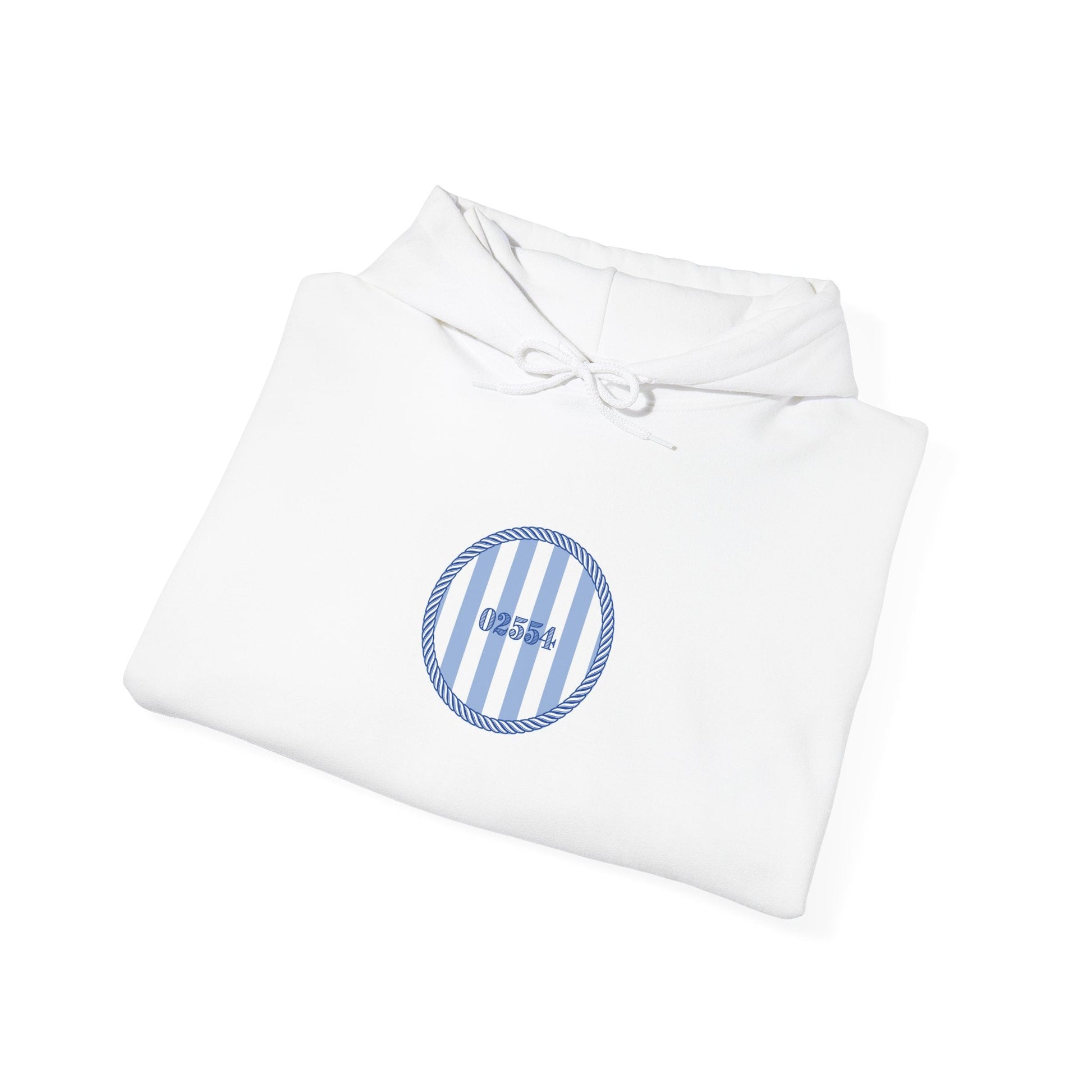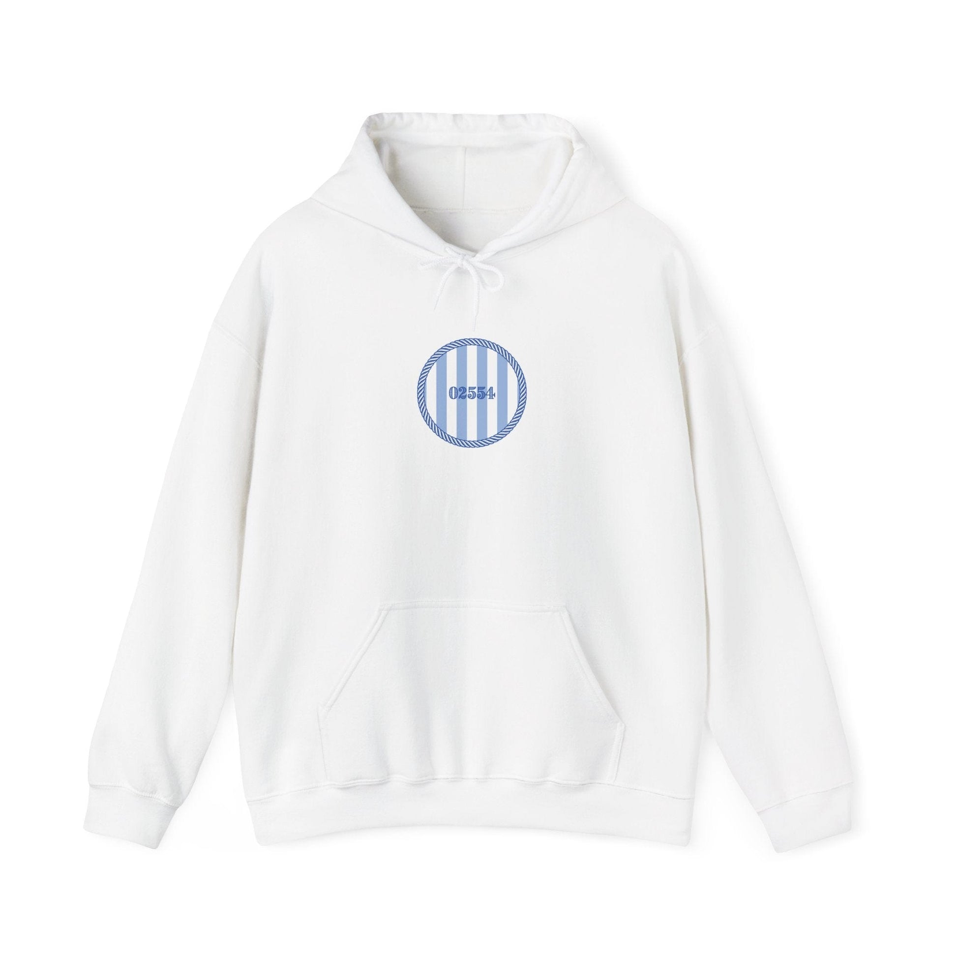 Our Nantucket 02554 blue and white striped unisex heavy blend hooded sweatshirt is simplicity personified. Made with a thick blend of cotton and polyester, it feels plush, soft and warm, a perfect choice for any cold day.